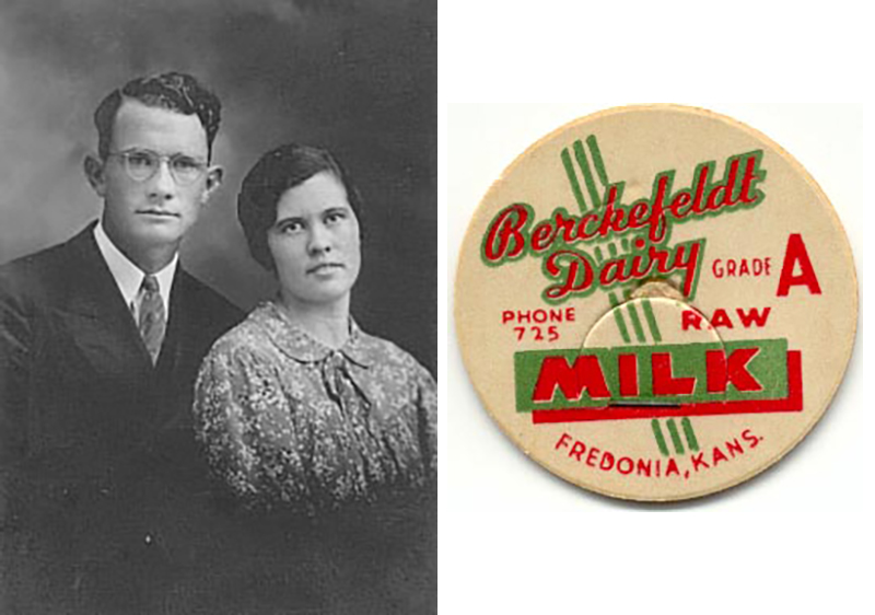 Carl Henry von Berckefeldt and Mildred Ethel (Spohn) Berckefeldt Antique milk bottle cap from the Berckefeldt Dairy in Fredonia, KS, owned by Carl and Ethel. These were last used in the mid-twentieth century, when milk was delivered in glass bottles